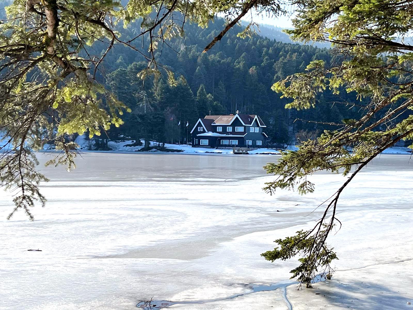 BOLU’da eşsiz manzarasıyla tatilcilerin ilgi odağı olan Gölcük Tabiat Parkı’ndaki 4,5 hektar büyüklüğündeki gölün yüzeyi buz tuttu.
