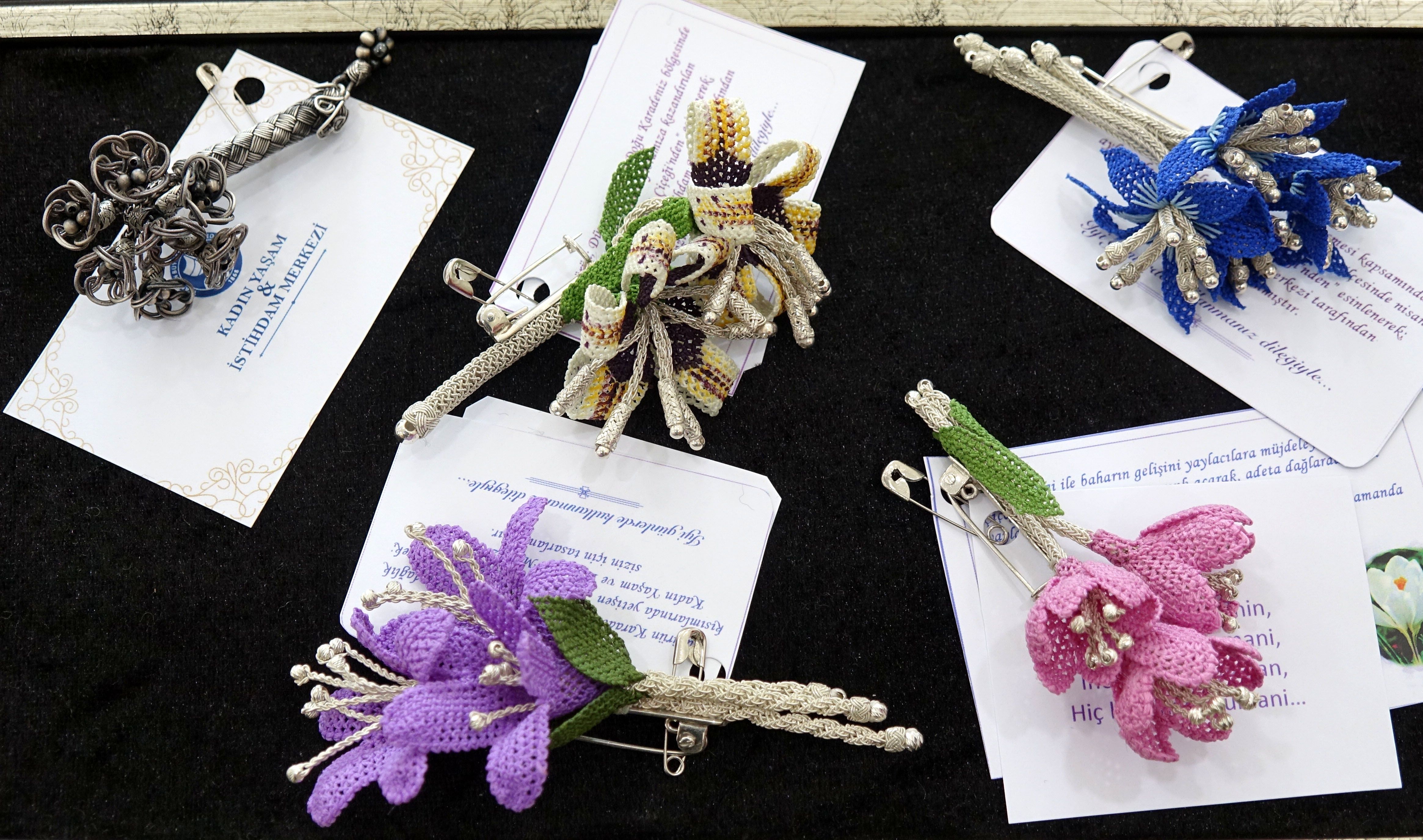 Kazaziye ustası Havva Memiş, bölgeye özgü endemik bitkileri kazaziye sanatı ile birleştirdiklerini söyleyerek, "Kazaziye sanatında 'aşk düğümü' modülünü farklı tekniklerle işliyorum ve yeni modeller üretiyorum. 17 yıldır bu mesleği yapıyorum. Yaparken de zevk aldığım bir meslek. Burada onu devam ettirmek çok güzel. Psikolojik anlamda da iyi hissediyorum. Kirpikli zambak, çocukluğumda yayla karanfili diye topladığım bir bitkiydi. Endemik bitkileri çalışırken aklıma geldi ve araştırdık. Kirpikli zambağın sadece Doğu Karadeniz'de yetiştiğini keşfettik. Modellerimizde kirpikli zambağı ve diğer bitkileri çalışarak kolye, broş ve iğne oyası şeklinde yapılmış şekillere de işleyerek kazaziye ile birleştirdik" dedi.