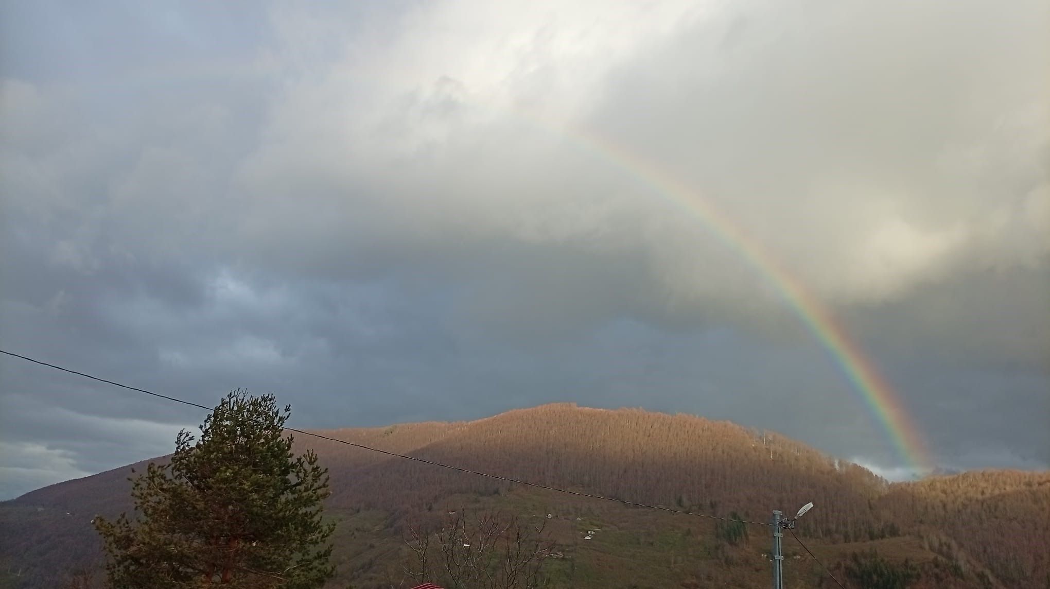 İlçenin bin rakımlı yayla ve tepe kesimlerinde etkili olan sağanağın ardından güneşin yüzünü göstermesiyle gökyüzünde renk cümbüşü yaşandı. Bulutların arasından süzülen güneş ışıkları ve bölgedeki sis tabakasıyla birleşen gökkuşağı, yeşil doğanın üzerinde güzel görüntüler oluşturdu.