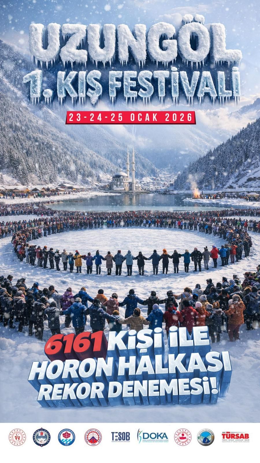 TRABZON’da beyaz örtüyle kaplanan Uzungöl’de 23-25 Ocak'ta ilk kez kış festivali düzenlenecek. Kar oyunları, kayak ve kızak etkinlikleri yapılacak olan festivalde, kentin plakasından esinlenerek 6 bin 161 kişiyle horon halkası rekor denemesi yapılacak. Uzungöl Festival Koordinatörü Erhan Eroğlu, turizmi 4 mevsime yaymayı amaçladıklarını belirterek, “İnsanlar Almanya’dan, Malatya’dan, Antalya’dan, Rusya’dan yazıp ‘6 bin 161’in içerisinde biz de varız’ diyorlar” dedi.