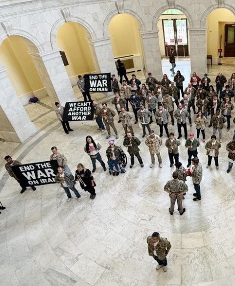 ABD'nin başkenti Washington'da İran'a karşı savaşı protesto eden gazi örgütleri, Kongre binasında toplandı. Protestocular, ABD saldırılarında öldürülen İranlıları anmak için kırmızı laleler taşıdı ve "İran'a karşı savaşa son verin" yazılı pankartlar açtı. Savaş sırasında ölen 13 ABD askerini de anan protestocular, savaş karşıtı sloganlar attı. Capitol Polisinden protestoculara müdahale gecikmedi. Aralarında engellilerin de bulunduğu 62 gazi ve aile üyesi plastik kelepçe takılarak gözaltına alındı.