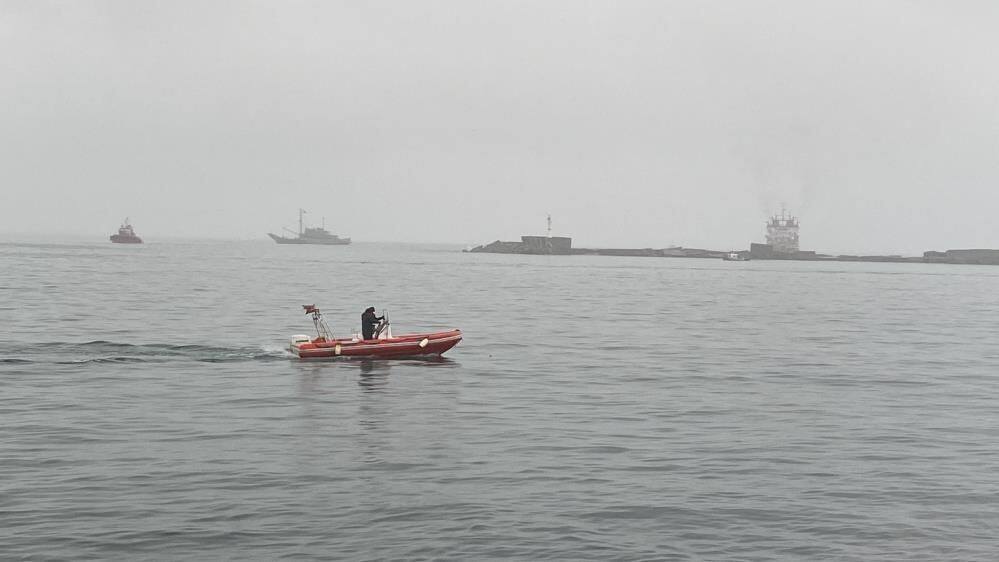 Denizde meydana gelen sis ve olumsuz hava şartlarına rağmen ekipler çalışmalarına devam ediyor.